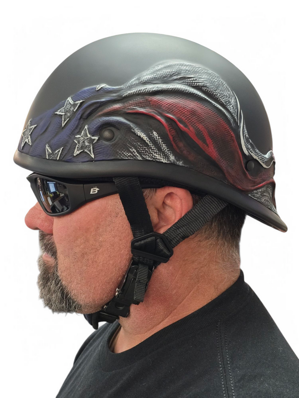 These helmets, featuring over 12 unique designs—including Ladies specific and the Detailed 3D Designs that made them famous—They are handcrafted with high-quality standards in India, setting them apart from mass-produced alternatives. DOT-approved and available with removable, cleanable liners on many models, they cater to riders seeking style, safety and comfort. Visit the Dallas-Fort Worth location for expert service and a wide selection.